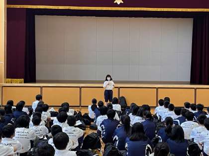 生徒代表挨拶では、安心安全を第一に、帰ってきた時に、成長した姿を見せられるように頑張ります。と力強い言葉が述べられました。