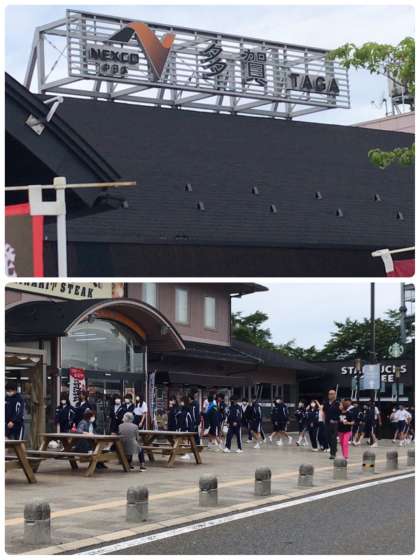 多賀サービスエリアでトイレ休憩です。雨はあがっていますが、若干遅れています。