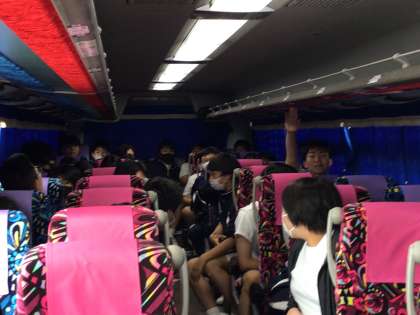バスの中では、レク係が中心になってバスレクが行われています。楽しんでます!
