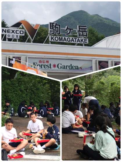 12時10分頃に駒ヶ岳サービスエリアに着きました。お弁当とお茶をもらって移動して、お昼ご飯を食べました。