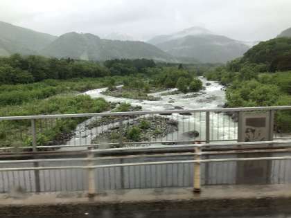 先程、8時30分にホテルを出発しました。昨日の天気とは打って変わって、雨はしっかり降っています。一路、風穴の里ドライブインをめざします。