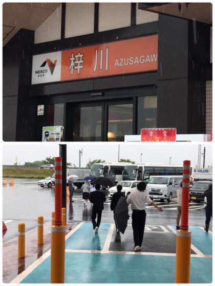 大雨の影響で、速度制限がかかっており、急遽、梓川サービスエリアでトイレ休憩を取りました。10時30分にサービスエリアを出発し、状況を確認しながら行程を進めます。