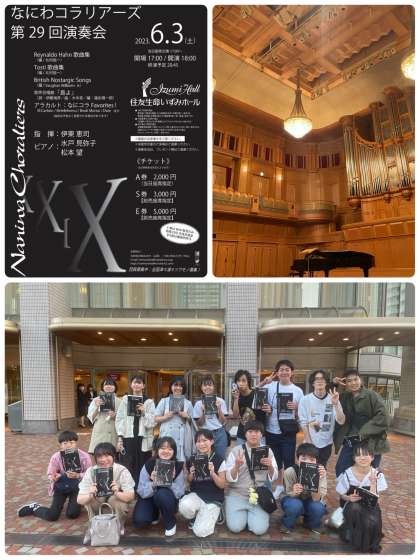 6月3日(土)、いずみホールで行われた男声コーラスの演奏会に音楽部のメンバーが参加し、鑑賞しました。研ぎ澄まされた素敵なハーモニーとパフォーマンスに圧倒され、たくさんの学びがありました。クラシックの演奏会に特化したホールだけあって、響きが素晴らしく、感動しました。新しい世界を知ることができた部員たち。今日の感動を胸に、これからの演奏活動に生かしていきたいです。