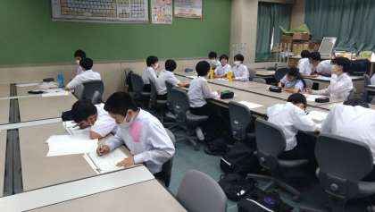 特に3年生においては、初めての実力テストに備えて、4科の対策プリントを行いました。