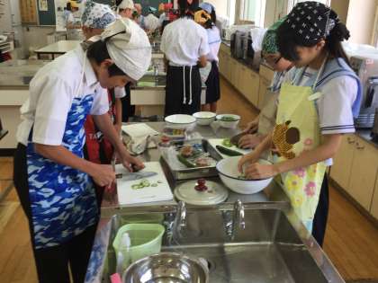 男子のエプロン姿も様になり、皆が和気藹々と協力