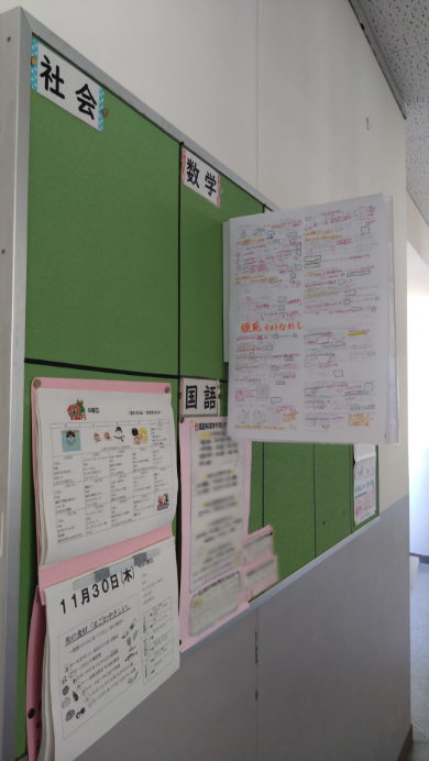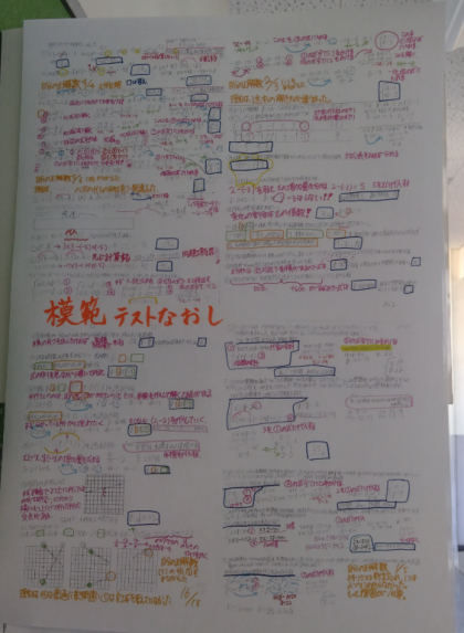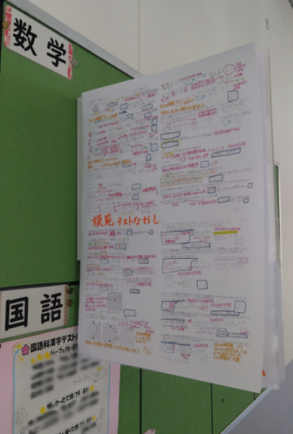 創意工夫したテスト直しノートがあったので、ポートフォリオとして廊下に掲示しました。