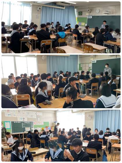 3年生の防災訓練は福島区役所の皆さんと行いました。全員で防災講座をきいた後に各教室にわかれ、情報伝達共有訓練を実施しましま。