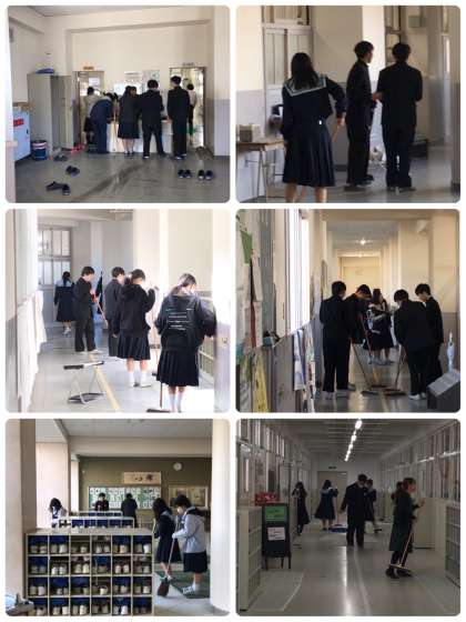 今日の4限目に大掃除をしました。本館、西館、教室、特別教室、廊下、階段、ホール、正門前など、それぞれの場所をきれいにしてくれていました。ありがとうございました。