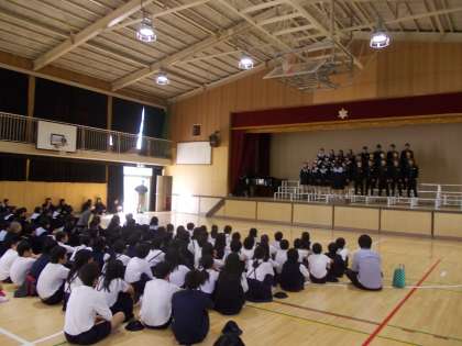 3年生による合唱コンクールの練習に、小中連携の一環として