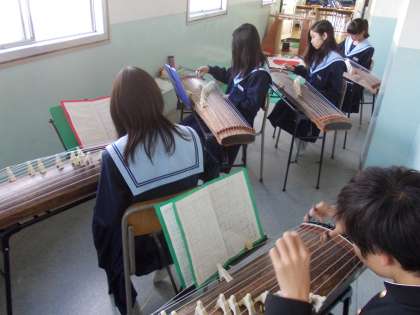 2年生の総合音楽科の生徒も、琴の練習をしています。