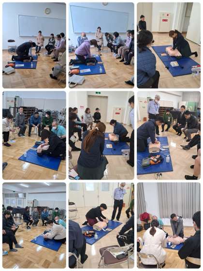 普通救命講習については、大阪消防振興協会の方々にお越しいただき、たっぷりとご指導いただきました。あらためて応急手当ての重要性を再認識し、頻繁に内容を振り返る必要性を確認しました。