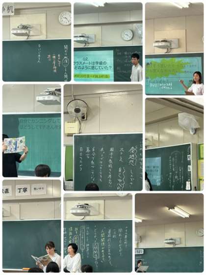 ? 昨日、野田中学校は、いじめについて考える日及びいのちについて考える日でした。来週3年生が修学旅行に行くため、昨日の日程となりました。