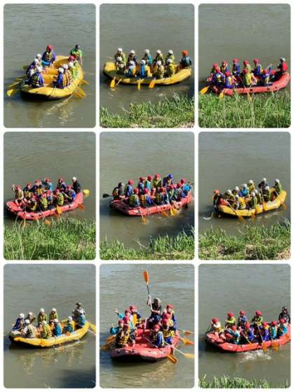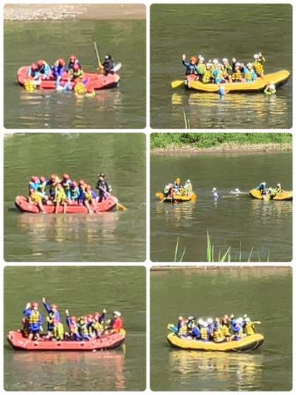 ラフティング中です。気温は上がりましたが、水は雪解け水の影響で、まだまだ冷たいようです。