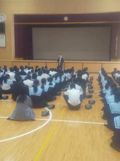 毎週月曜日は全校集会でした。先週は3年生が修学旅行、1年生が一泊移住でしたので、校長先生からそれらの行事で得た経験を学校生活に活かすことを期待するという話しをしていただきました。