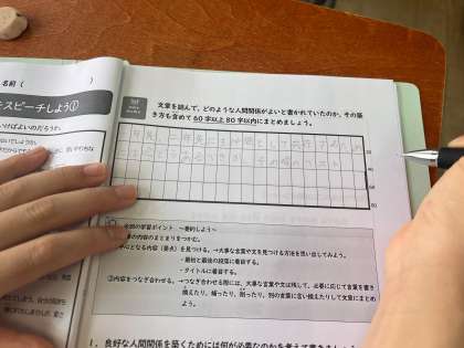 「どんな人間関係を築いていけばいいのだろうか」というテーマで読み物を読んで、その文章をまとめて、考えを整理しています。