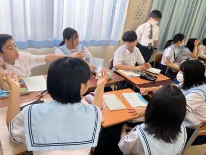 動物の分類について、パワーポイントを活用したり、班活動で話し合って答えを導き出したりする活動を行っています。