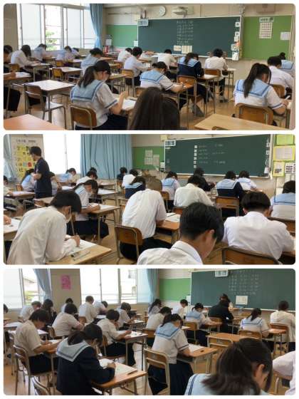 本日、3年生の第1回実力テストが行われています。最後まで諦めずにやり切ってください。