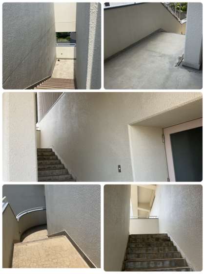 高圧洗浄機を使って、溜まっていた土や砂など、階段はもちろん壁についた汚れも真っ白に洗い流してくれました。