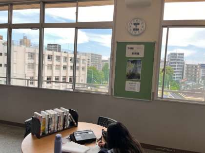 1年生の4階フロアのスペースは、各委員の生徒たちや学級代表、先生方がアイデアを出し、知的な空間になってきています。