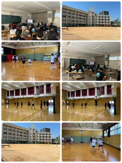 土曜日の午前ですが、多くの部活動が活動をしています。グラウンドでは野球部が、体育館では男子バスケ部が、藤修館(格技室)では女子バスケ部がそれぞれ練習に取り組んでいます。また音楽室では音楽部がDVDを鑑賞しています。