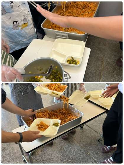 給食の準備中におじゃましました。限られた時間の中で、準備がすすめられていました。