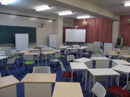 行い、プロジェクター付の電子黒板、キャスター付の机・イス、複数のホ