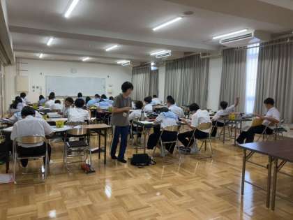 美術の授業では、文化発表会の展示作品を制作しています。集中して取り組んでいます!