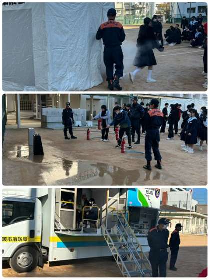2年生は消化器や起震車で地震の揺れを疑似体験し、災害の怖さについて学びました。