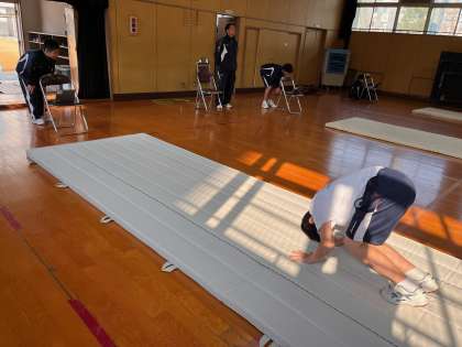 体育では、男子がマット運動、女子が1.5km走をやっています。