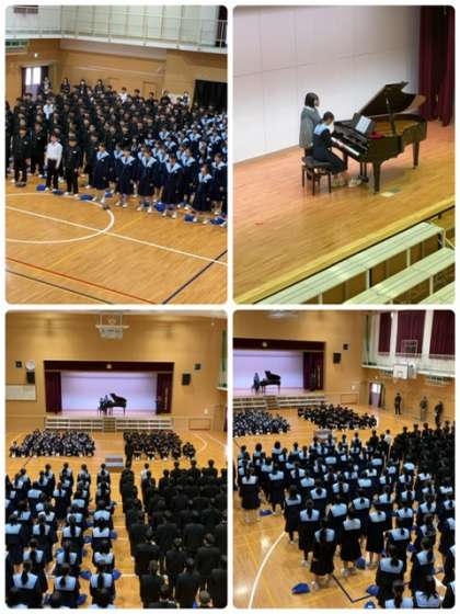 3年生、1・2年生からそれぞれメッセージと歌が送られました。