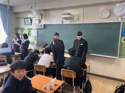 今日の1時間目は、各クラスでメンバー決めをしています。