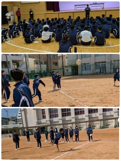 晴天の下、1年生の球技大会が行われました。ソフトバレーボールを使ったり、最後は全員リレーに取り組んでいました。非常に盛り上がる行事でした。