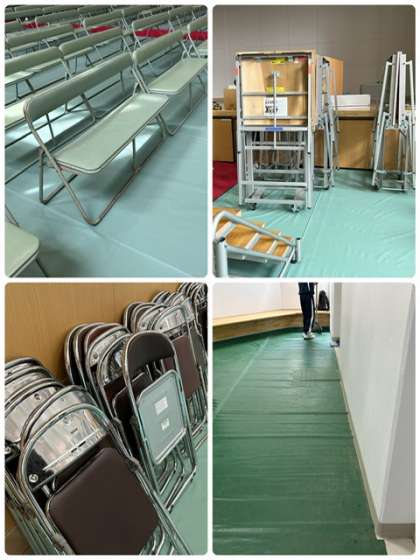 明日は本校の入学式です。新2年生が会場の準備や廊下・階段の清掃をおこなっています。