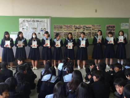 1月9日土曜授業で実施した2年生百人一首大会の表彰が