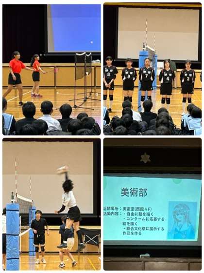 本日は新入生に向けて部活動紹介がありました。運動部・文化部共に工夫を凝らした紹介がされていました。