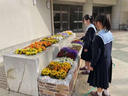 また、玄関前の花壇に毎朝、生徒会の人たちが水をあげてくれています。