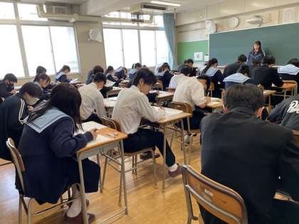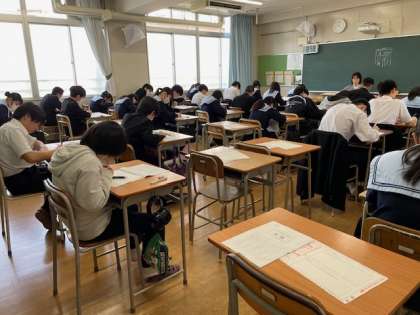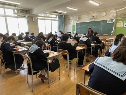 本日、3年生は全国学力・学習状況調査に取り組んでいます。1限、国語の様子です。