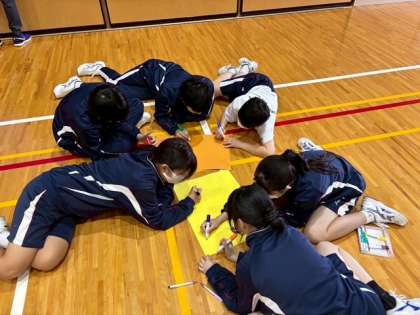 5.6時間目に体育館でクラスビルディング活動をおこないました。