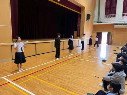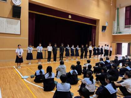 今日は、学級代表、各委員会、そして金曜日から校外学習の取り組みが始まるので校外学習実行委員会の18名の生徒もみんなの前で意気込みを話しました。