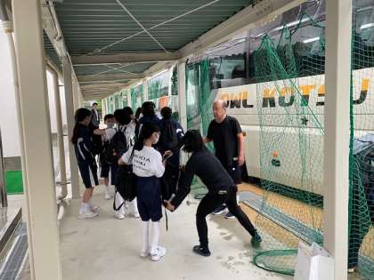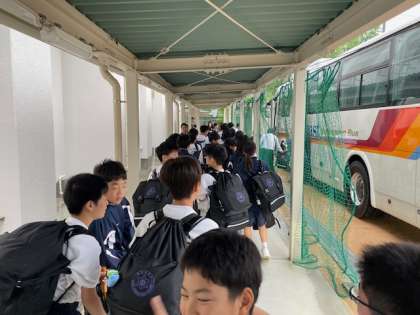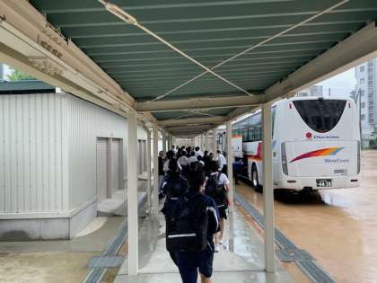 バスに移動です。「行ってきます。」と元気にあいさつをしています。
