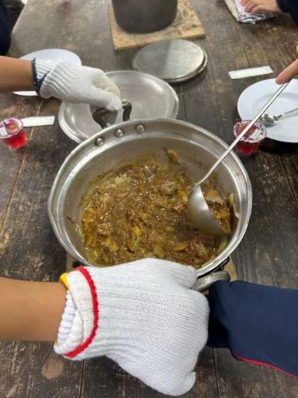 各班でつくったカレーが完成しました。どれも美味しそうです。