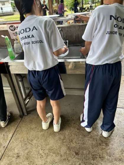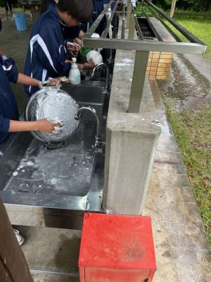 カレーを美味しくいただいたあとは、片付けです。協力して片付けをしています。