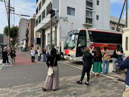 見送りに来ていただいた保護者の皆さま、教職員の皆さん、ありがとうございました。行ってきまーす。