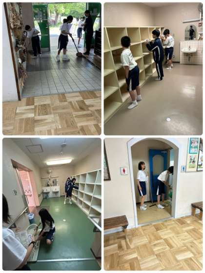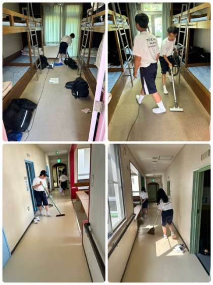 その後、館内で使用した部屋や談話室、トイレ、風呂場の掃除をしました。来た時より美しくをモットーに、しっかり取り組んでいました。