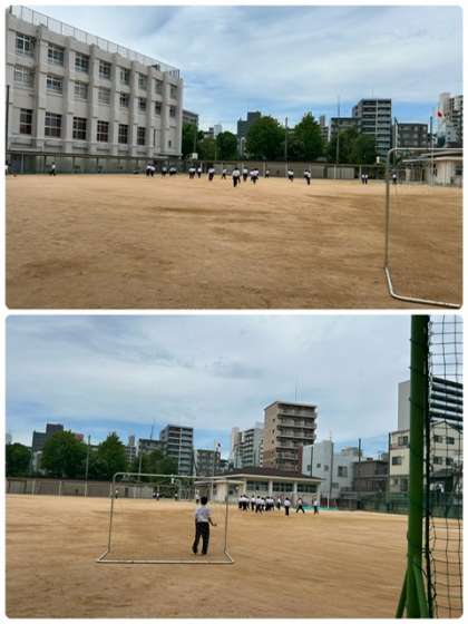 今日は2年生が校外学習、3年生が修学旅行のため、グラウンドは1年生のみでした。グラウンドを広々と使っていました。