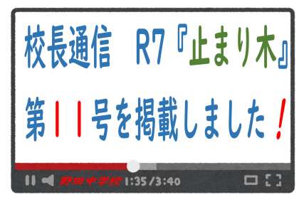 校長通信「止まり木」第11号を掲載しました。