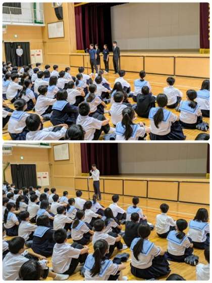 本日は教育実習生の先生の実習最終日であるため、全校集会が行われました。