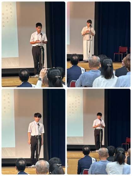7月5日(土)に区民センターで、社会を明るくする運動の表彰式が行われました。本校から標語コンクールに応募し表彰を受けた生徒が何人か、いました。どの作品も、気持ちに届く内容でした。