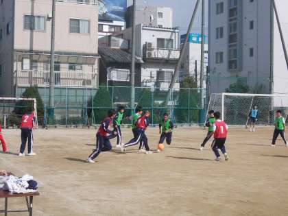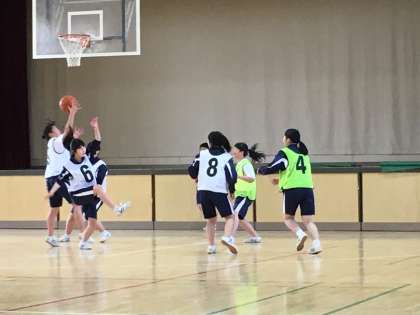 サッカー、女子は体育館でバスケットボールを、3クラス総当た
