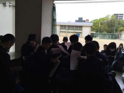 、新たなクラス分けが配布され生徒が熱心に見入っているところです)。